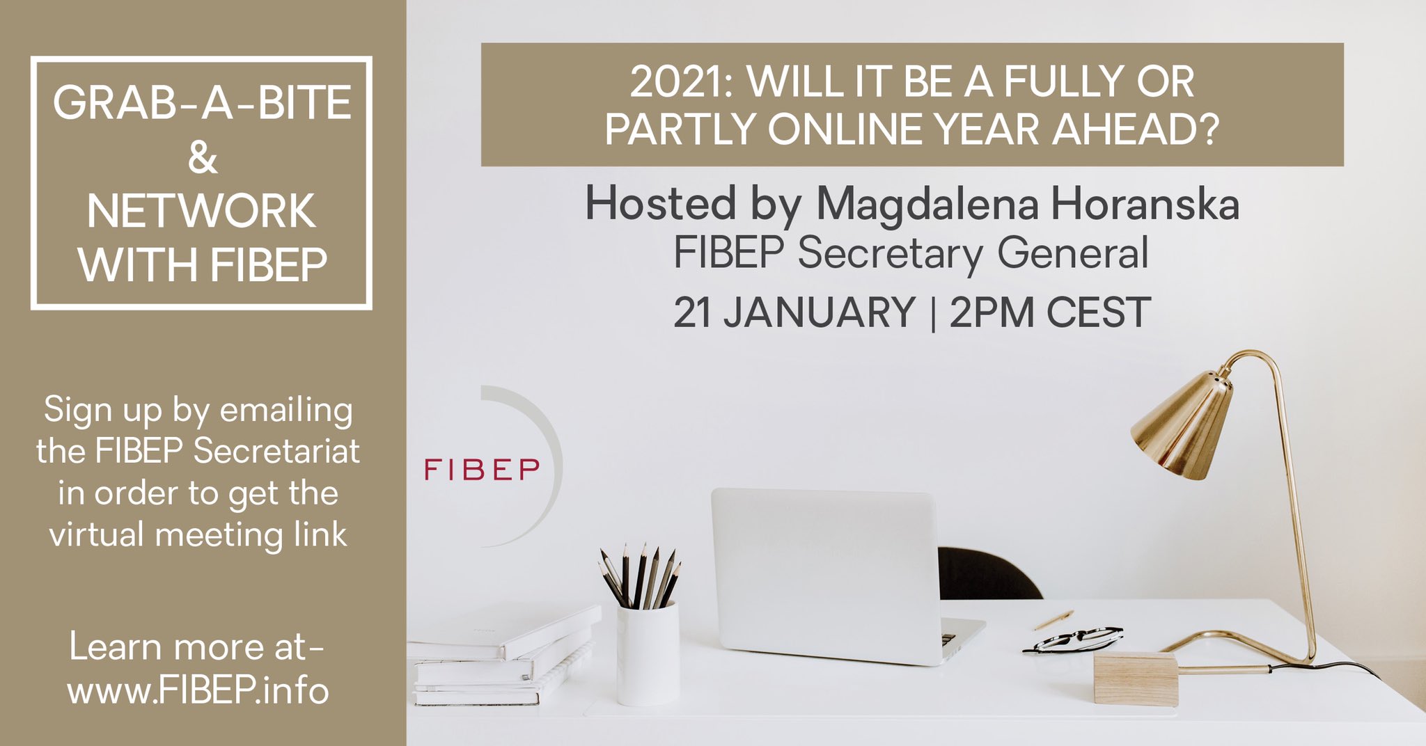 Το διαδικτυακό session είχε τίτλο “2021: Will it be a fully or partly online year ahead?” και αποτελεί μέρος μιας σειράς συζητήσεων που διοργανώνει η FIBEP υπό τον τίτλο “Grab-a-Bite”. Σε αυτό είχαμε την ευκαιρία να ανταλλάξουμε απόψεις για το πώς έχει διαμορφωθεί η κατάσταση αυτή τη στιγμή σε επίπεδο υπηρεσιών, εργαζομένων και συνδρομητών, εξαιτίας της πανδημίας. Κυρίως, εστιάσαμε στο πώς το κάθε μέλος της Ένωσης σχεδιάζει να λειτουργήσει σε παρατεταμένες συνθήκες lockdown, αλλά και στο πώς θα δημιουργήσει το καλύτερο δυνατό περιβάλλον για την επιστροφή των εργαζομένων στους χώρους εργασίας.