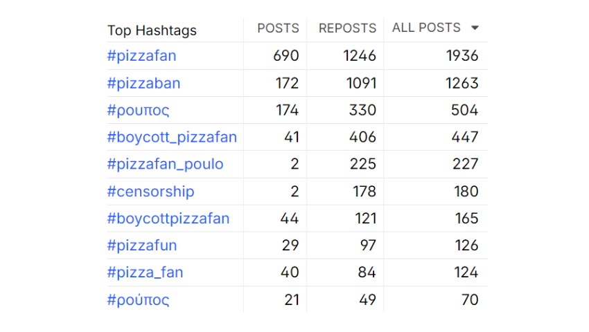 *Η ανάλυση βασίζεται μόνο σε διαθέσιμα δημόσια δεδομένα από το internet και από κανάλια social media στην Ελλάδα. Η αναζήτηση περιορίστηκε στα keywords «Pizza Fan» και «Πάρις Ρούπος» σε διάφορες πιθανές παραλλαγές (αγγλικά, ελληνικά, greeklish, με ή χωρίς τόνους, κτλ).