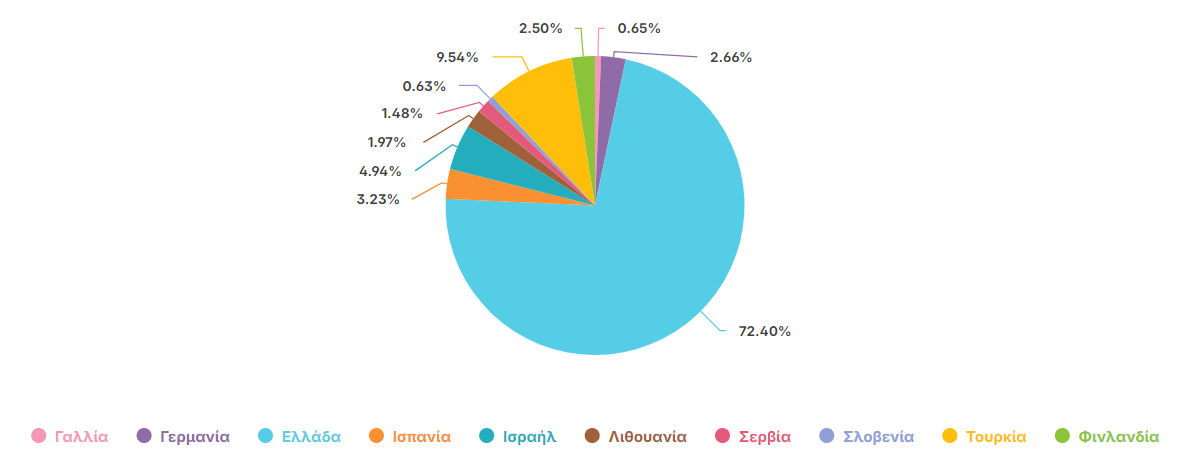 Η Ελλάδα κατέλαβε το 72,4% της συνολικής συζήτησης, ενώ οι χώρες που αναφέρθηκαν περισσότερο από τους Έλληνες χρήστες στα social media ήταν η Τουρκία (9,54%) και το Ισραήλ (4,94%):