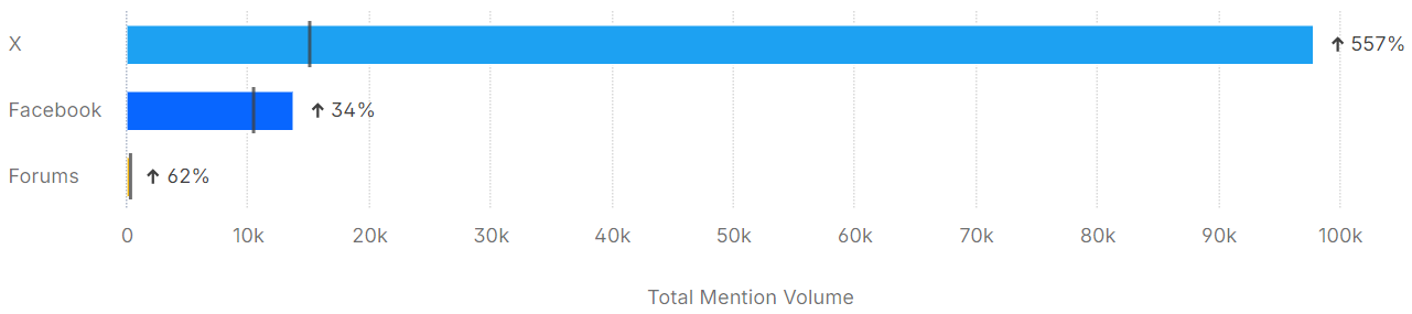Περιορισμοί Αναζήτησης: Η πλατφόρμα Brandwatch συλλέγει δεδομένα από websites, blogs, forums, social media (X, Facebook, Instagram, Reddit, Tumblr, κ.α.) με τους περιορισμούς που ορίζει κάθε μέσο. Για παράδειγμα, οι συζητήσεις σε κλειστά forums και Facebook private groups ή τα Instagram Stories δεν συλλέγονται. Η παραπάνω ανάλυση αποτελεί μια ενδεικτική προσέγγιση, λαμβάνοντας υπόψη ότι διαφοροποίηση σε πηγές και χρονικό διάστημα μπορεί να φέρει μια διαφορετική εικόνα.