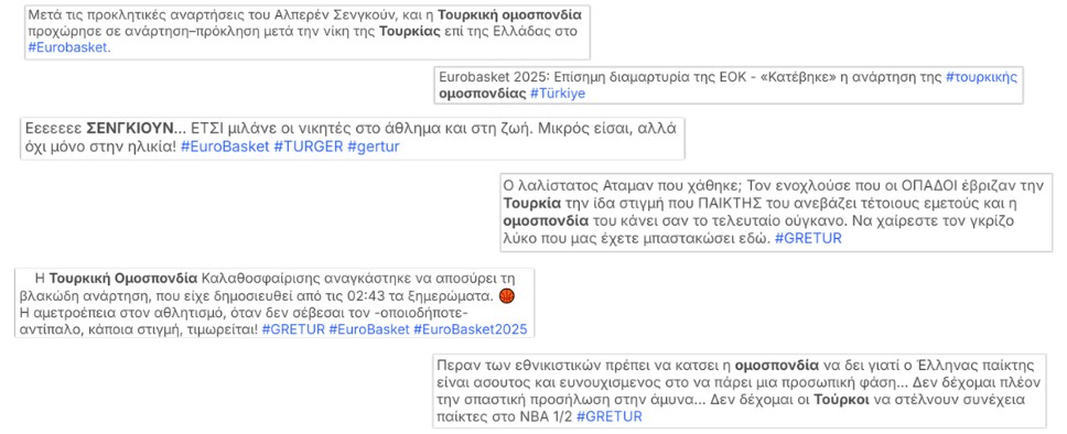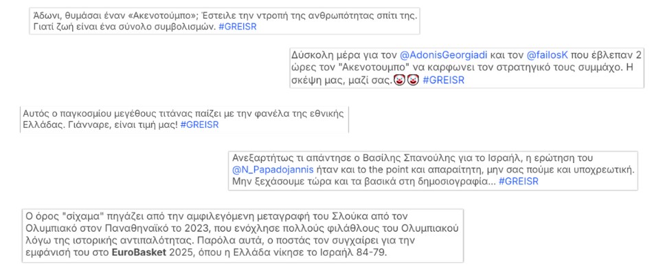 - Κυρίαρχα hashtags: #eurobasket, #eurobasket2025, #grefin, #gretur, #greisr