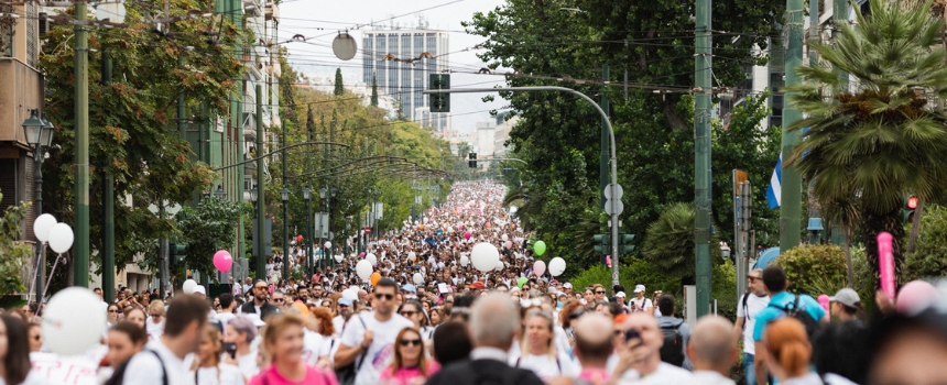 Περισσότεροι από 60.000 άνθρωποι κάθε ηλικίας πλημμύρισαν τους δρόμους της Αθήνας, αλλά και το διαδίκτυο με digital συμμετοχή, στέλνοντας το πιο ηχηρό μήνυμα: ΜΑΖΙ είμαστε πιο δυνατοί από τον καρκίνο του μαστού.